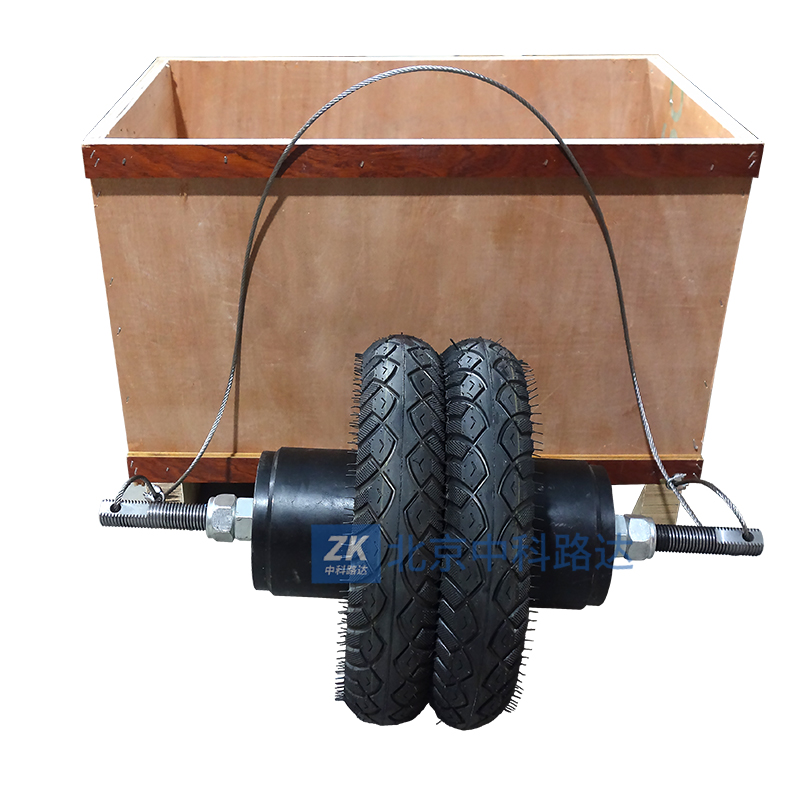 5、撞擊物體是總重量為(50±0.1)kg的軟體重物,由兩個輪胎、兩個重塊和其它連接件組成,輪胎內(nèi)壓力宜為0.35±0.02MPa。
