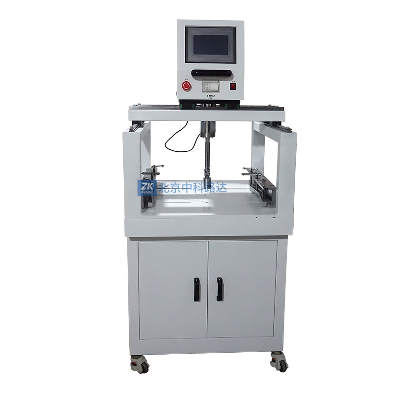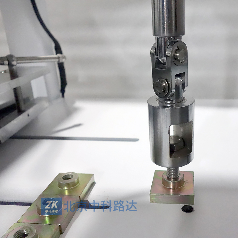 5將試件基板固定在測試儀底板上,如實時力值顯示非零,待顯示穩定后,確認測試頭不受力時,把數值清零將萬向卡頭扶正,測試頭移動到試件附近(移動時卡頭不要碰撞試件,以免損壞),平移測試頭,使試件上丁字頭移入測試頭,測試頭與試件中心偏差應盡量小。準備工作完畢。