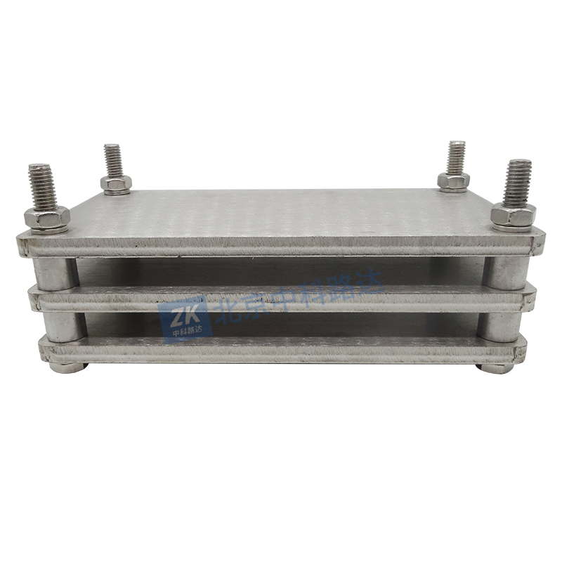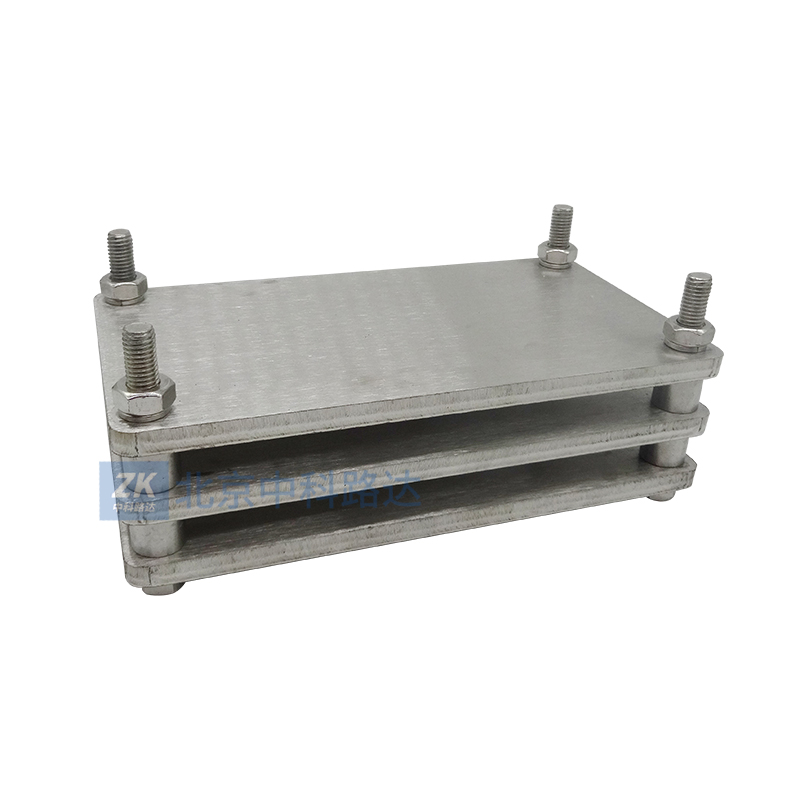泡沫壓縮永久變形器由平行鋼板、限制器和緊固件組成,符合GB/T 6669-2008 ISO 1856:2000 《軟質泡沫聚合材料壓縮永久變形的測定》的要求。在規定的溫度下,使泡沫材料試樣在一定的時間內維持恒定的變形,待試樣恢復一段時間后,觀察形變對試驗厚度的影響。用試樣的初始厚度與最終厚度之差與試樣初始厚度之比的百分率表示該材料的壓縮永久變形。