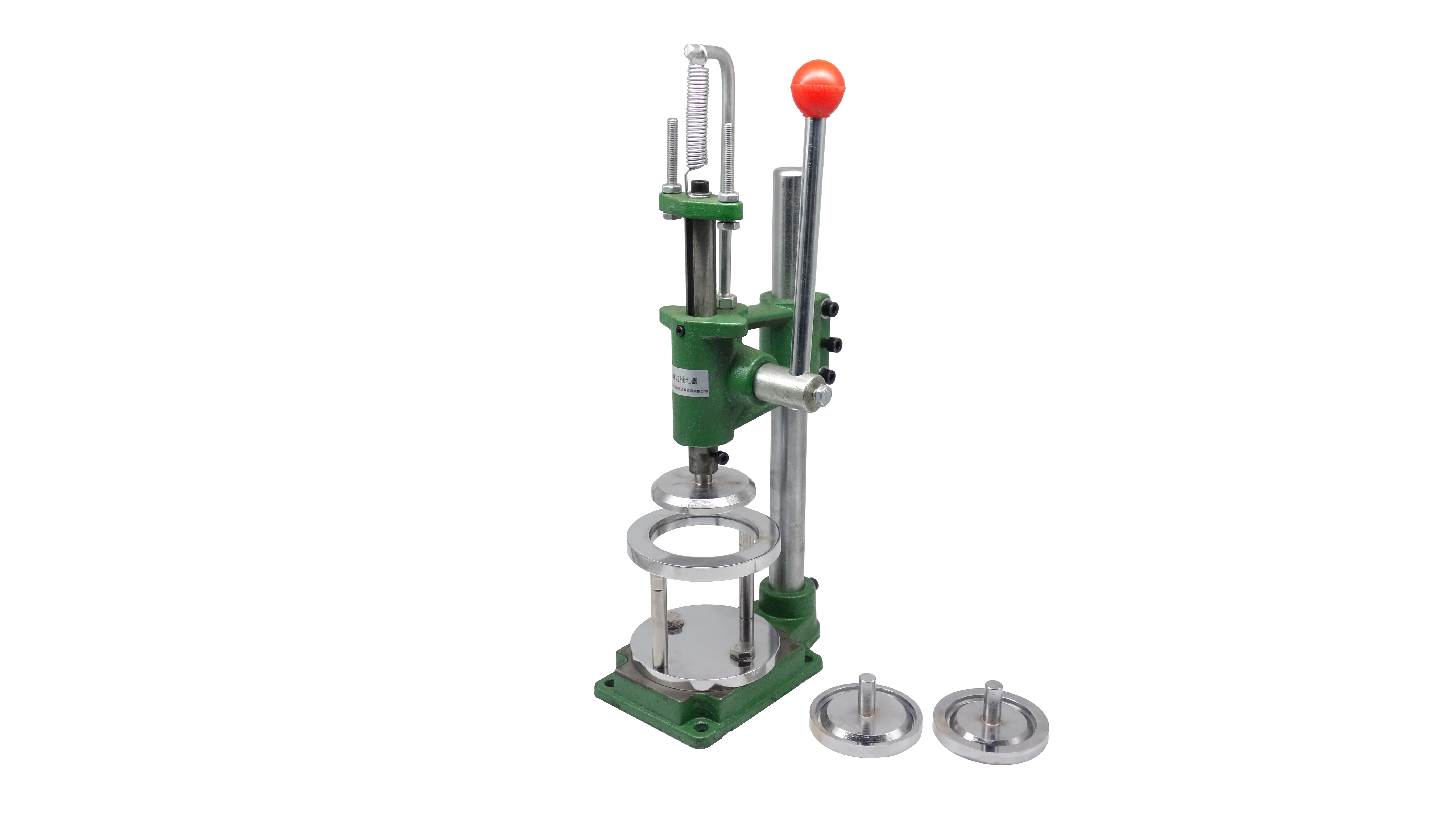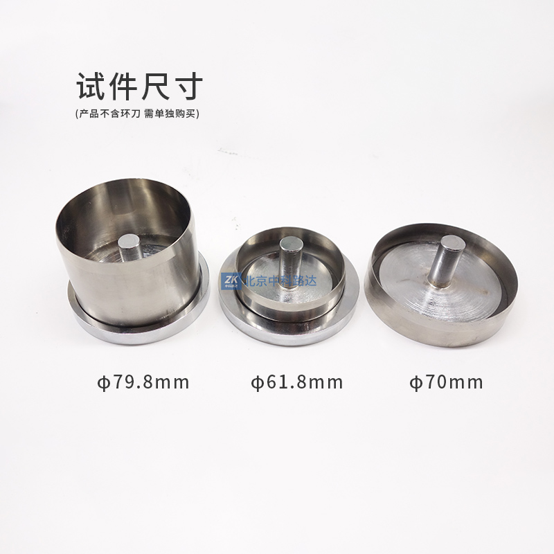 環刀推土器用于環刀取土后試件的推出,操作簡單,快捷方便,備用三種壓頭和支座,可用于φ61.8mm,φ70mm 和φ79.8mm三種尺寸試件。
