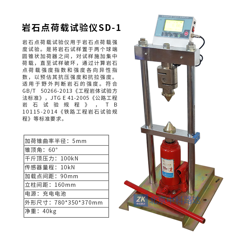 巖石點(diǎn)荷載試驗(yàn)儀用于巖石點(diǎn)荷載強(qiáng)度試驗(yàn)。是將巖石試樣置于兩個(gè)球端圓錐狀加荷器之間,對(duì)試樣施加集中荷載,直至試樣破壞,通過計(jì)算巖石點(diǎn)荷載強(qiáng)度指數(shù)和強(qiáng)度各向異性指數(shù),以預(yù)估其抗壓強(qiáng)度和抗拉強(qiáng)度。適用于野外判斷巖石的強(qiáng)度。符合GB/T 50266-2013《工程巖體試驗(yàn)方法標(biāo)準(zhǔn)》,JTG E 41-2005《公路工程巖石試驗(yàn)規(guī)程》,TB 10115-2014《鐵路工程巖石試驗(yàn)規(guī)程》等標(biāo)準(zhǔn)要求。