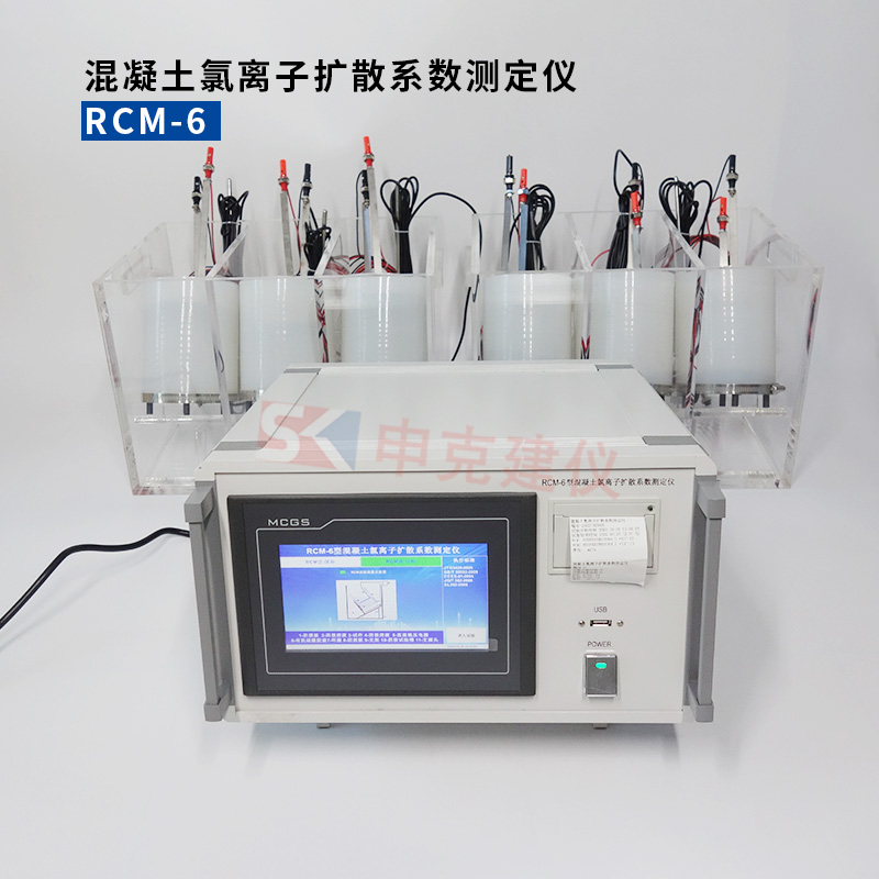 混凝土氯離子擴散系數測定儀適用于以測定氯離子在混凝土中非穩態遷移的遷移系數來確定混凝土抗氯離子滲透性能。集兩種測試方法于一體,可做行標30V恒電壓擴散系數,也可根據電流調節電壓(儀器根據電流計算,自動提示所需調節的電壓)做國標10~60V變電壓擴散系數。