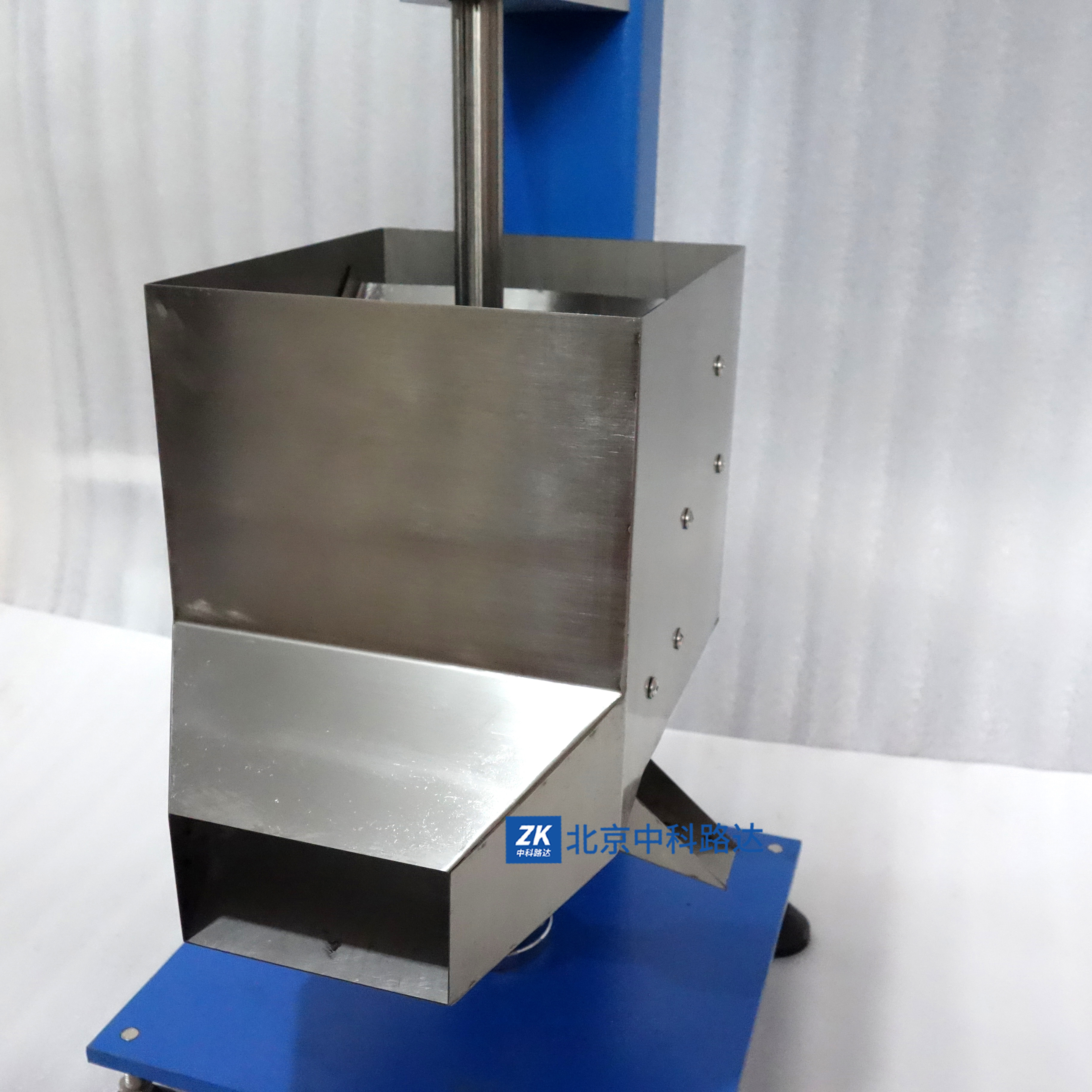 落砂耐磨試驗機用來測試標準條件下有機涂層(諸如鋁塑復合板或金屬漆,汽車漆等)的耐磨性。讓一定大小的砂粒通過導管從規定的高度落到試驗樣板上,直至磨到露出基材為止,稱取將漆膜破壞所需要的砂量,以單位涂層厚度所用的標準砂量來評定該漆膜的耐磨性。按照GB/T 23988-2009《涂料耐磨性測定 落砂法》及ASTM D 968 制造,精密控制每一個零部件的尺寸偏差,且主要零部件均采用高級耐磨不銹鋼制造。