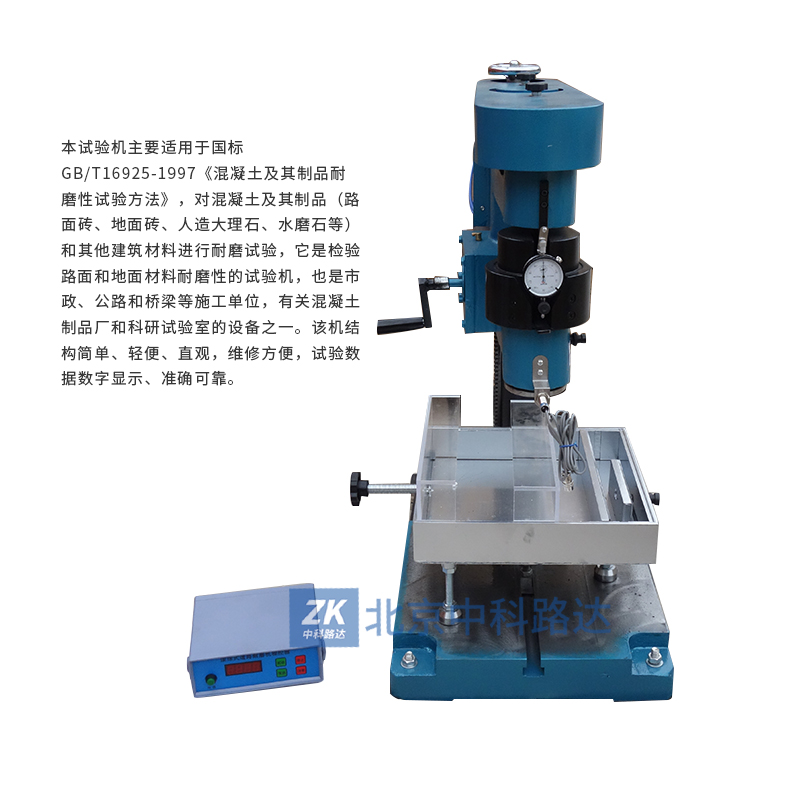 本試驗機主要適用于國標(biāo)GB/T16925-1997濕凝土及其制品耐磨性驗方法》,對混凝土及其制品(路面磚、地面磚、人造大理石、水磨石等)和其他建筑材料進(jìn)行耐磨試驗,它是檢驗路面和地面材料耐磨性的試驗機,也是市政、公路和橋梁等施工單位,有關(guān)混凝土制品廠和科研試驗室的設(shè)備之一。該機結(jié)構(gòu)簡單、輕便、直觀,維修方便,試驗數(shù)據(jù)數(shù)字顯示、準(zhǔn)確可靠。