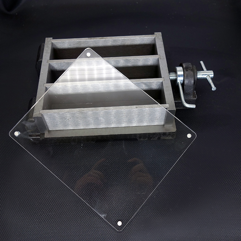 在試模上蓋塊玻璃板,也可用相似尺寸的鋼板或不滲水的,和水泥沒有反應的材料制成的板。蓋板不應與水泥膠砂接觸,蓋板與試模之間的距離應控制在2mm-3mm之間。為了安全,玻璃板應有磨邊。