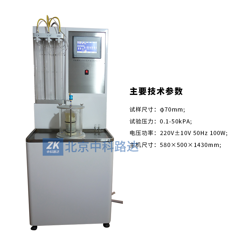 本儀器用于納基膨潤土防水毯滲透系數(shù)和天然鈉基膨潤土防滲襯墊滲透系數(shù)的測定。鈉基膨潤土防水毯一定壓差作用下會產(chǎn)生微小滲流, 測定在規(guī)定水力壓差下一定時間內(nèi)通過試樣的滲流量及試樣厚度,即可計算求出滲透系數(shù)。符合JG/T193-2006《鈉基膨潤土防水毯》和JC/T 2054-2020《天然鈉基膨潤土防滲襯墊》的標準要求。