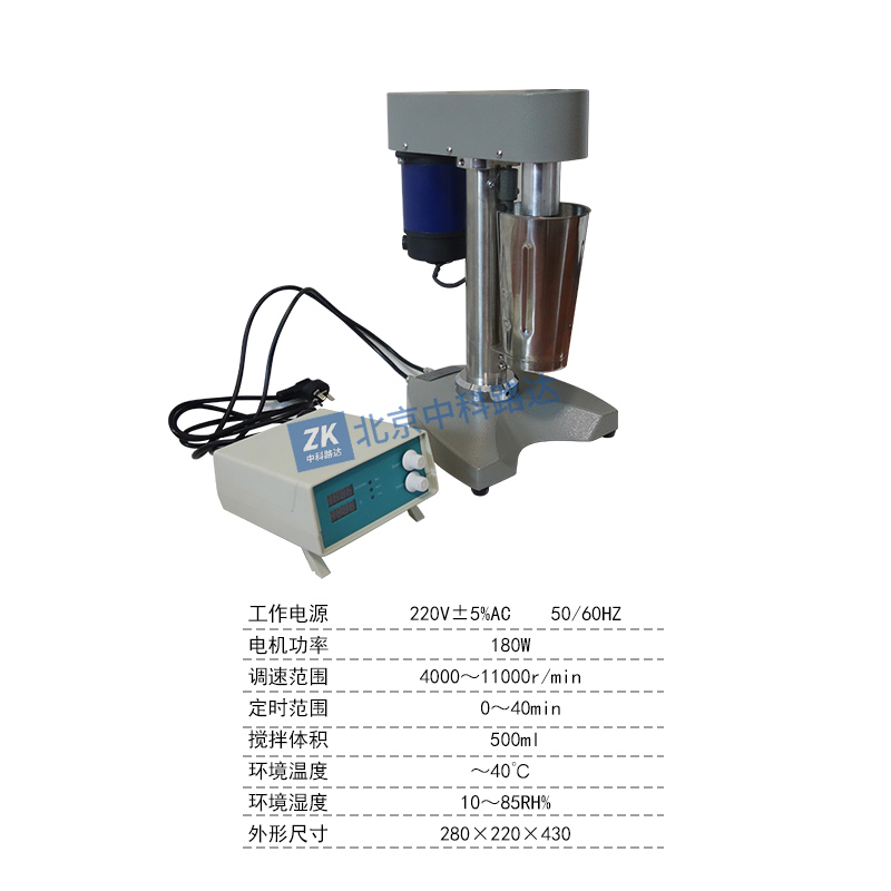 工作電源 220V5%AC 50/60HZ電機功率 180W調速范圍 4000~11000r/min定時范圍 0~40min攪拌體積 500ml環境溫度 ~40℃環境濕度 10~85RH%外形尺寸 2802...
