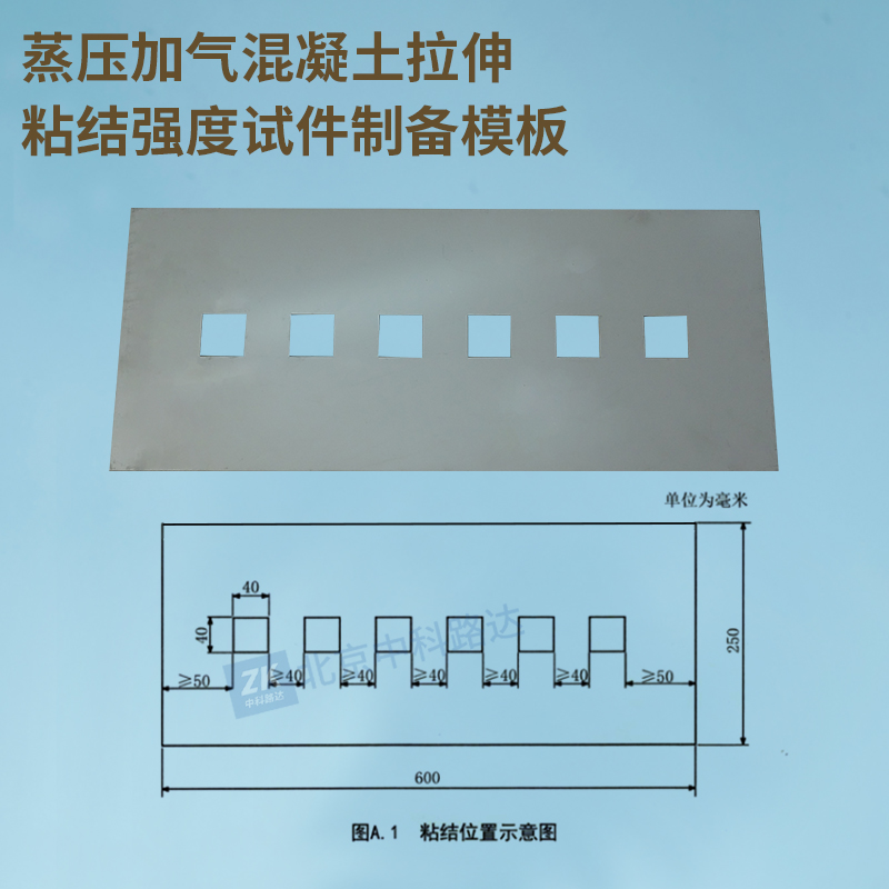 蒸壓加氣混凝土拉伸粘結強度試件制備模板用于以蒸壓加氣混凝土砌塊為基材的拉伸粘結強度試件的制備,形成6個40*40mm的拉拔粘粘面。符合JC/T 890-2017《蒸壓加氣混凝土墻體專用砂漿》附錄A的標準要求。...