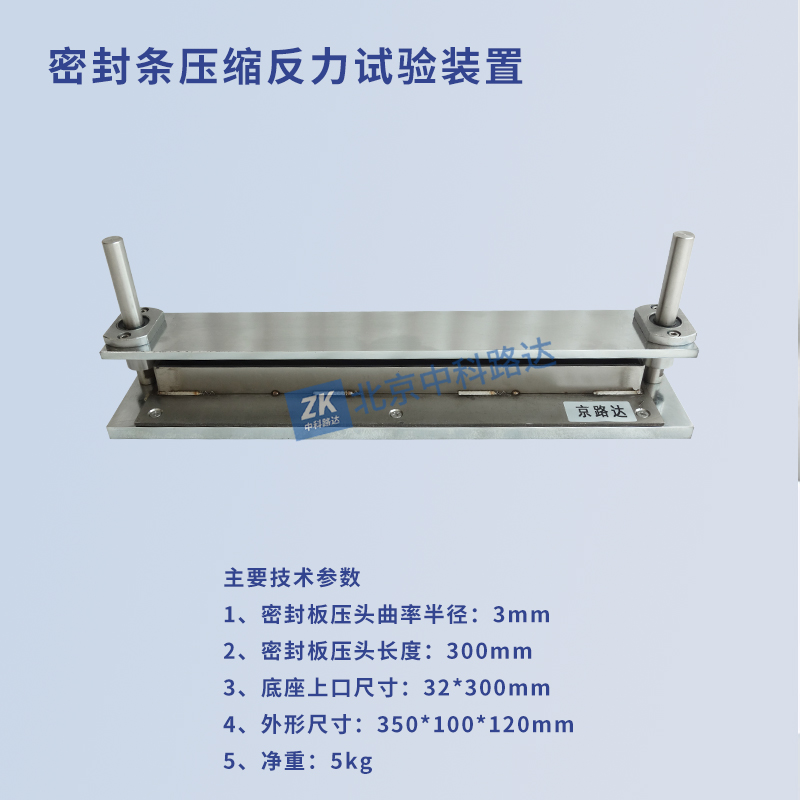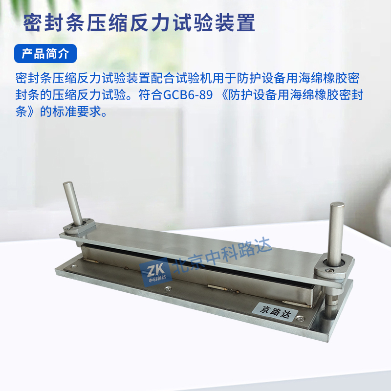 密封條壓縮反力試驗裝置配合試驗機(jī)用于防護(hù)設(shè)備用海綿橡膠密封條的壓縮反力試驗。符合GCB6-89 《防護(hù)設(shè)備用海綿橡膠密封條》的標(biāo)準(zhǔn)要求。