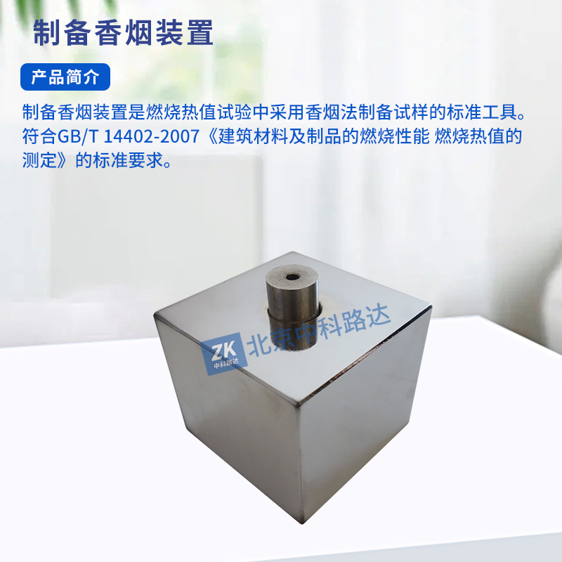 制備香煙裝置是燃燒熱值試驗中采用香煙法制備試樣的標準工具。符合GB/T 14402-2007《建筑材料及制品的燃燒性能 燃燒熱值的測定》的標準要求。
