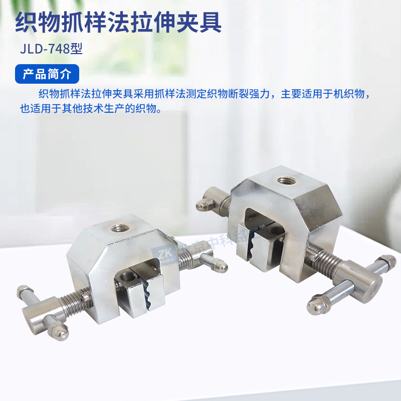 織物抓樣法拉伸夾具采用抓樣法測定織物斷裂強力,主要適用于機織物,也適用于其他技術生產的織物。...
