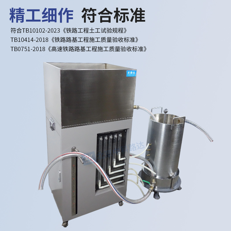 粗粒土常水頭滲透儀用于測定土的滲透系數(shù),用于最大粒徑不大于75mm的粗粒土和級配碎石。符合TB10102-2023《鐵路工程土工試驗規(guī)程》、TB10414-2018《鐵路路基工程施工質(zhì)量驗收標準》和TB0751-2018《高速鐵路路基工程施工質(zhì)量驗收標準》的標準要求